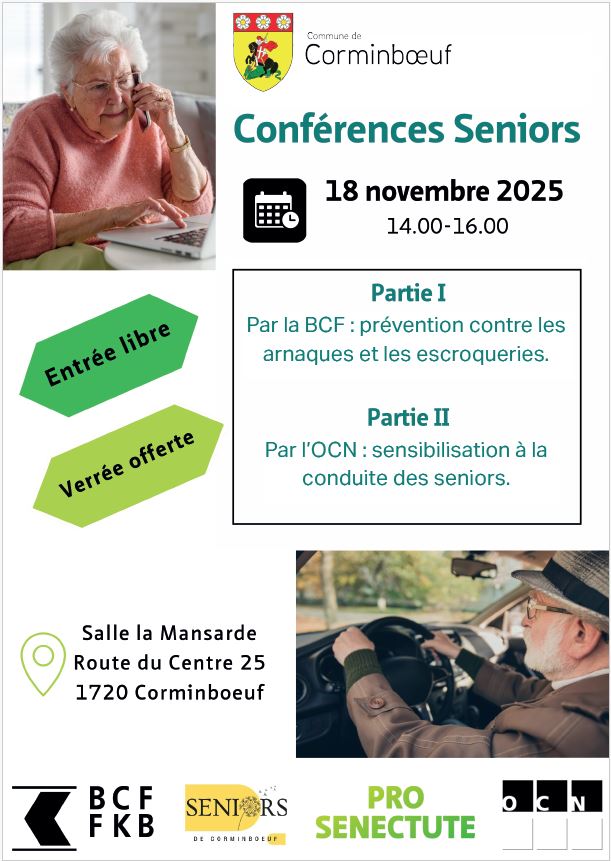 La commune de Corminboeuf convie les personnes intéressées à la conférence Senior sur :
